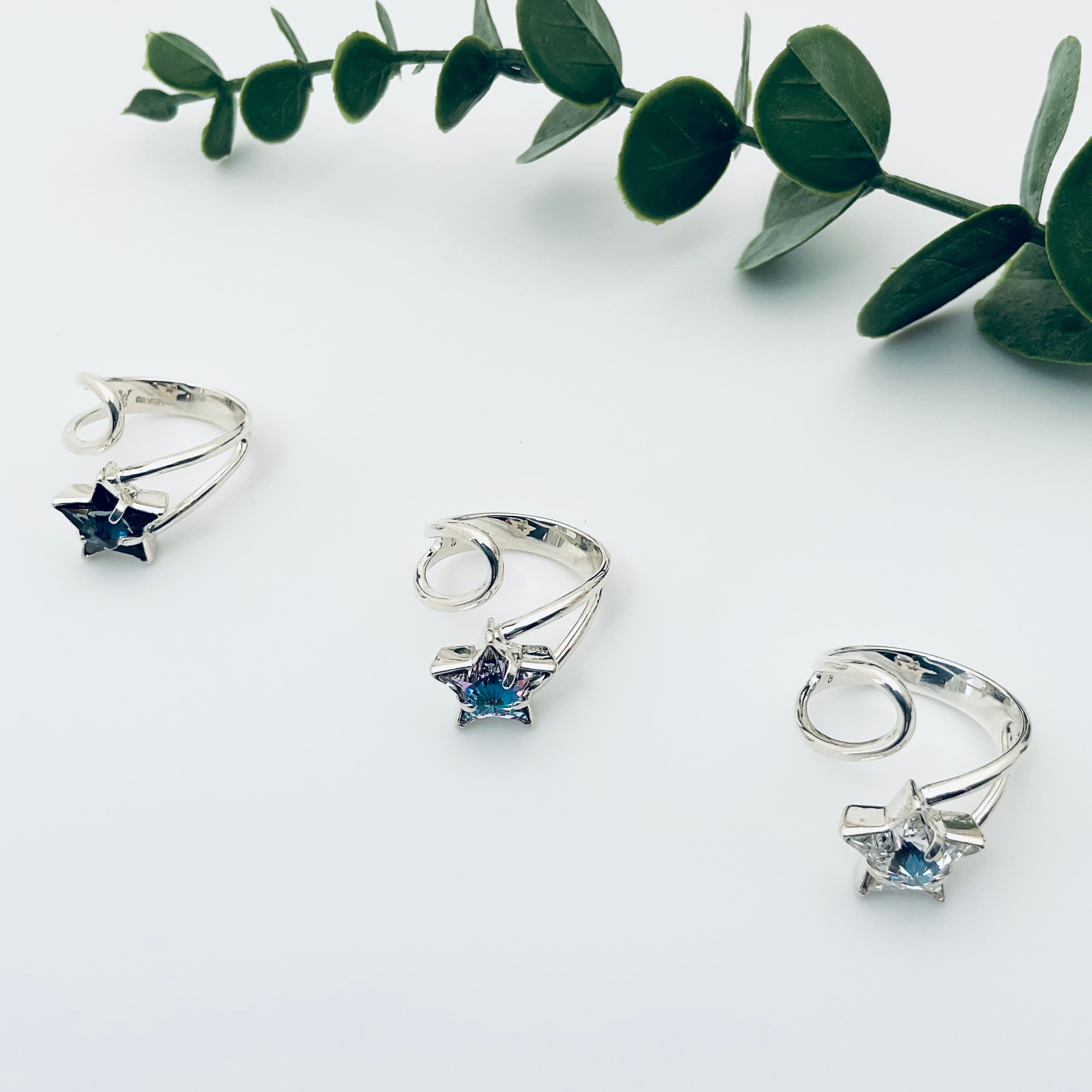 星型スワロフスキークリスタルを使用したフリーサイズのSILVER925リング。