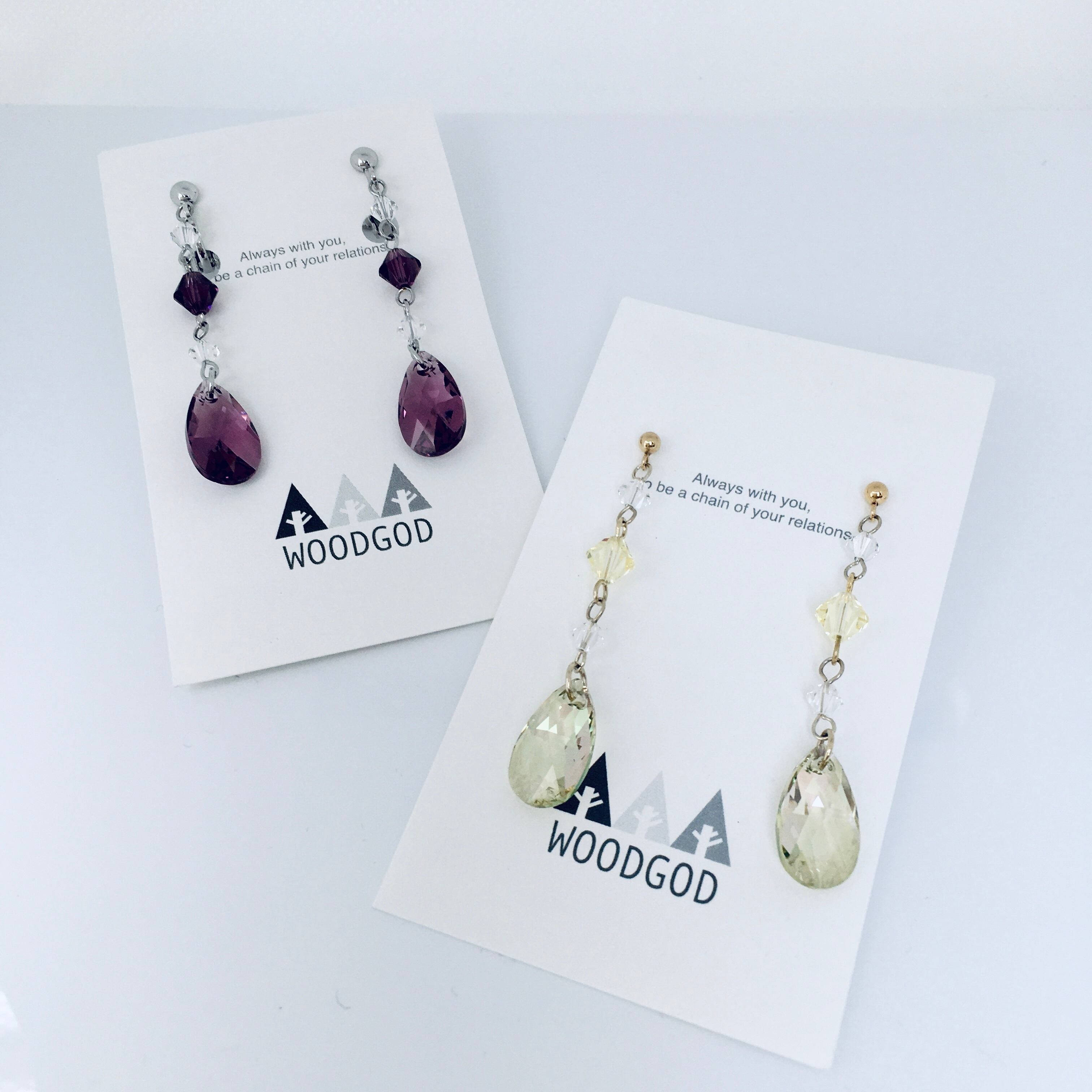 そろばん型としずく型のクリスタルが華やかに揺れます。