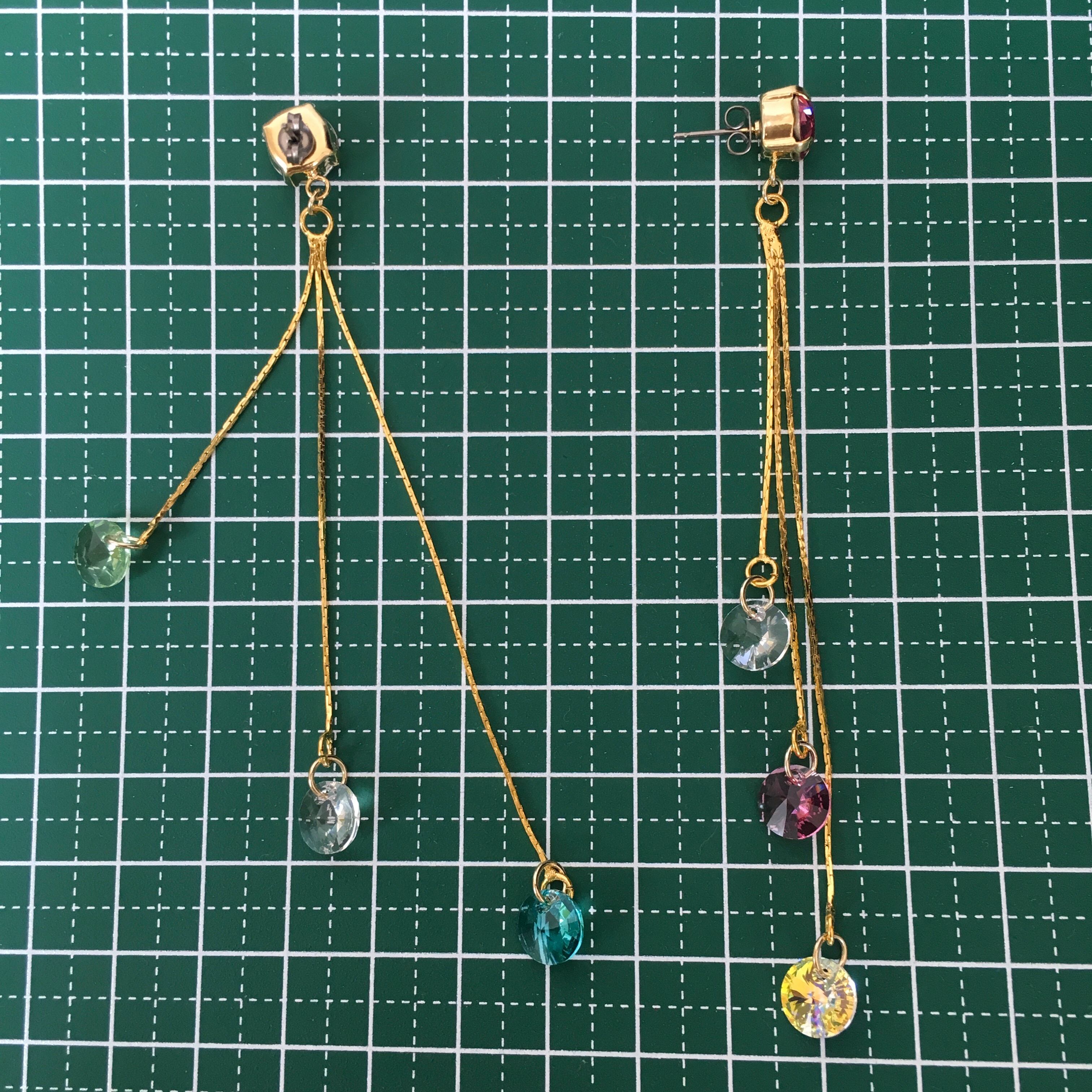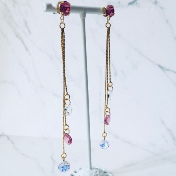 長さの違う3連チェーンにラウンドタイプのクリスタルをセットしました。