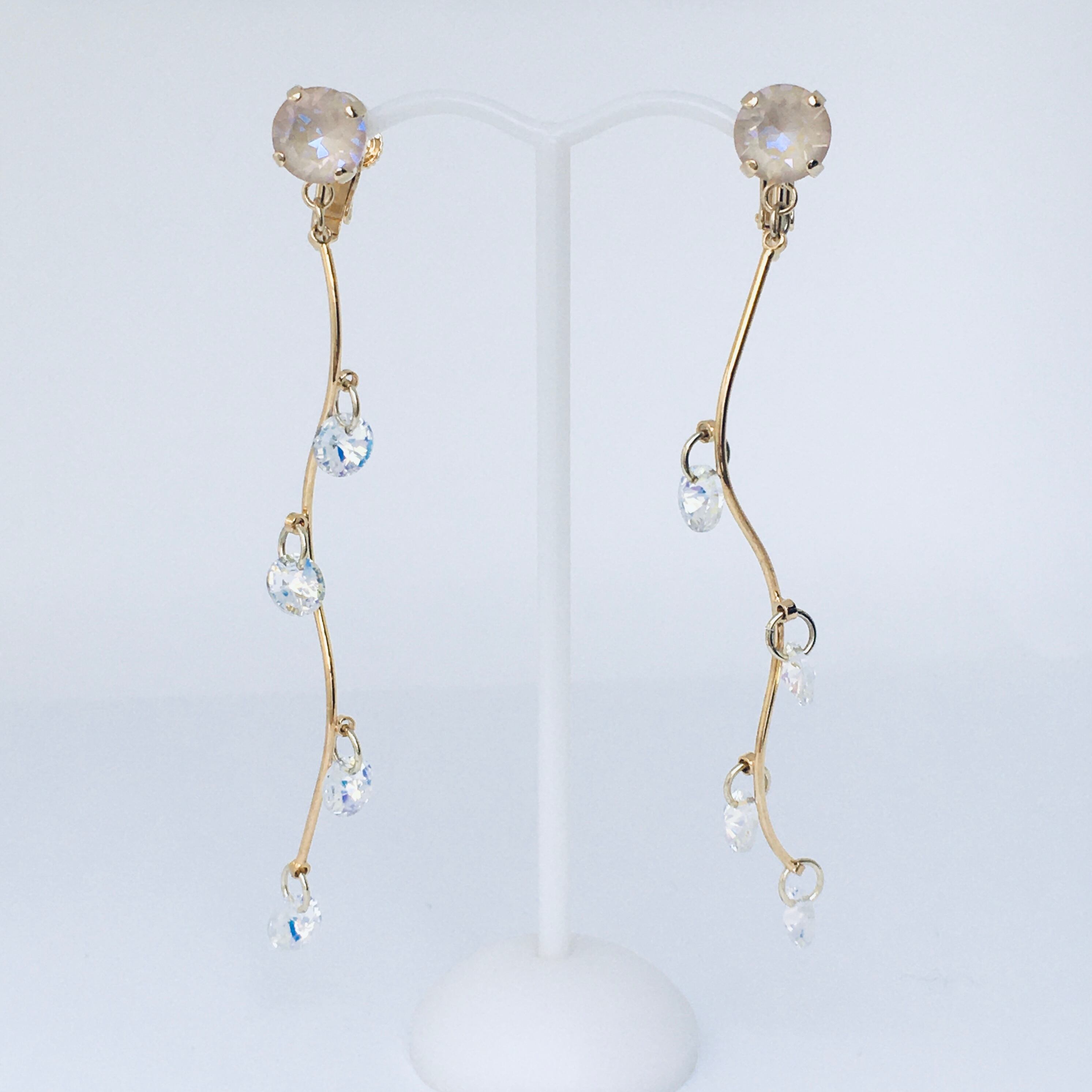 クリスタルが小さな花のよう揺れる、上品で可愛らしいデザインです。