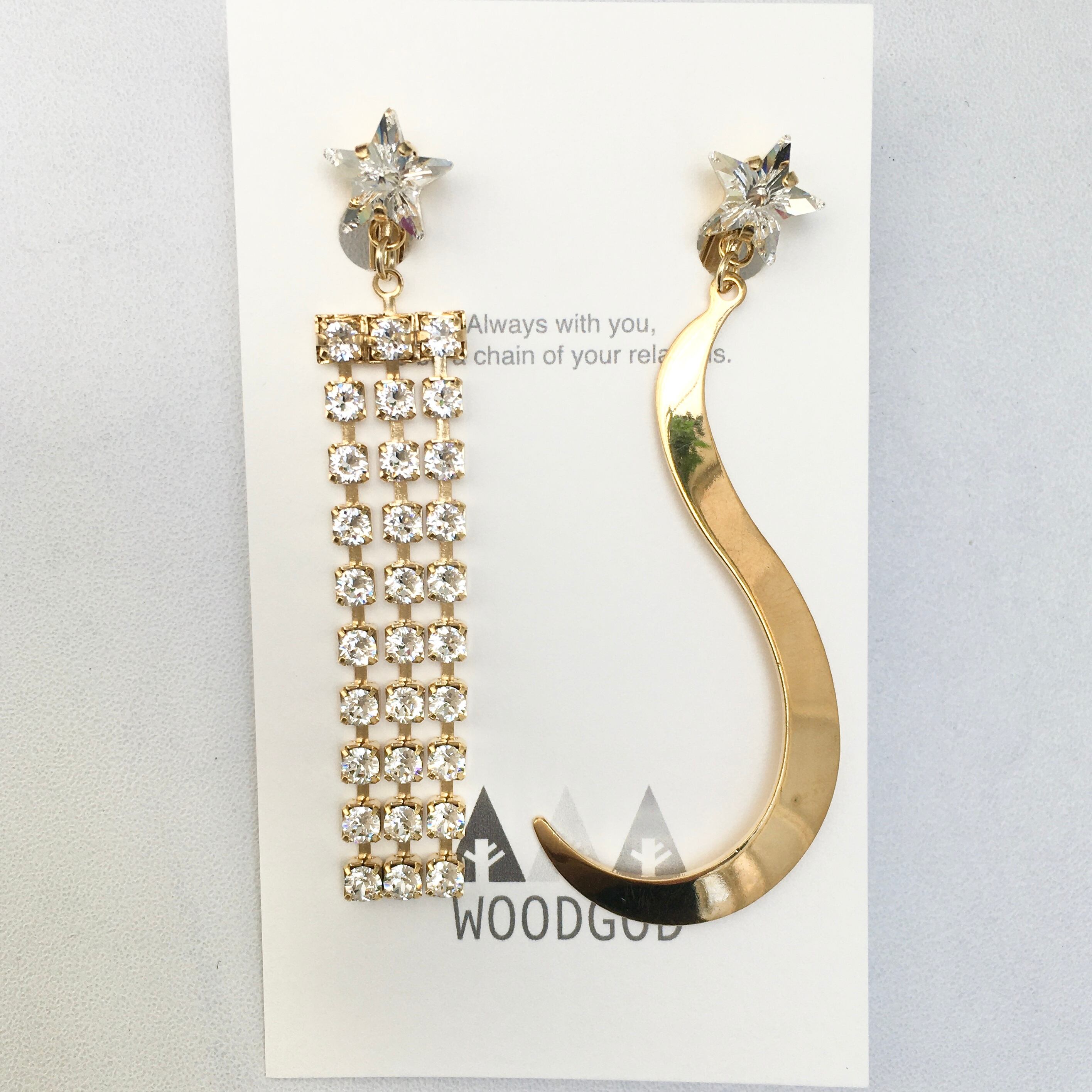 星型クリスタルに左右異なるモチーフをセットしたゴージャスなアシンメトリーデザイン。