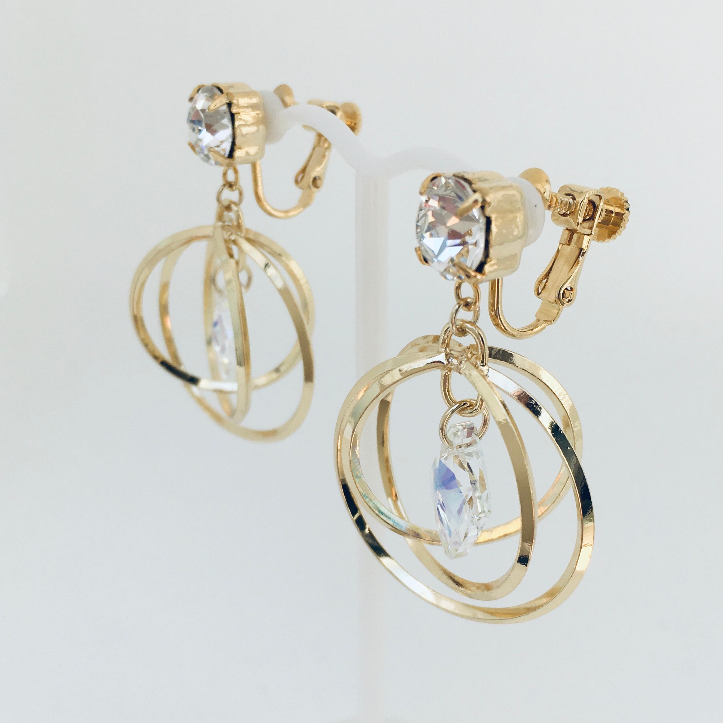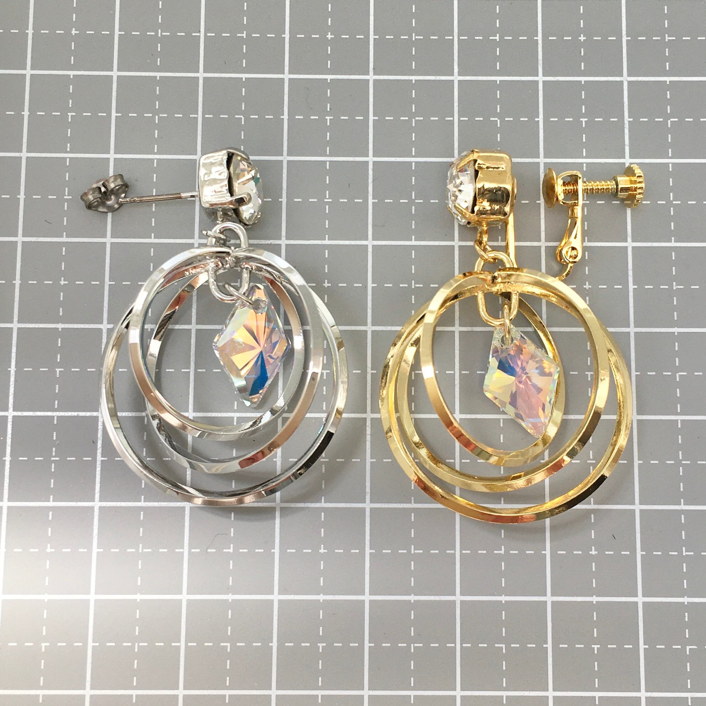 立体的な3重フープ(固定タイプ)とひし形チャームのアクセサリー。